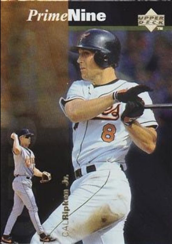 The Cal Ripken, Jr. 1998 Upper Deck #PN35 Prime Nine card is 1 of 21 Cal Ripken, Jr.'s card variations in the 1998 Upper Deck set being tracked by Sports Card Investor, including #310 Base, #614 Base, #145 Base, #40 10th Anniversary Preview, and #40 10th Anniversary Preview Edition Retail.