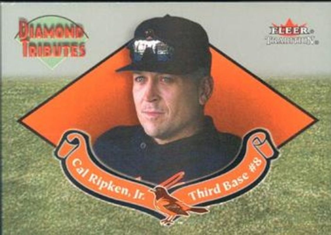 The Cal Ripken Jr. 2002 Fleer Tradition #1DT Diamond Tributes card is 1 of 8 Cal Ripken Jr.'s card variations in the 2002 Fleer Tradition set being tracked by Sports Card Investor, including Base, Grass Roots, Heads Up, This Day In History, and This Day In History - Autographs.