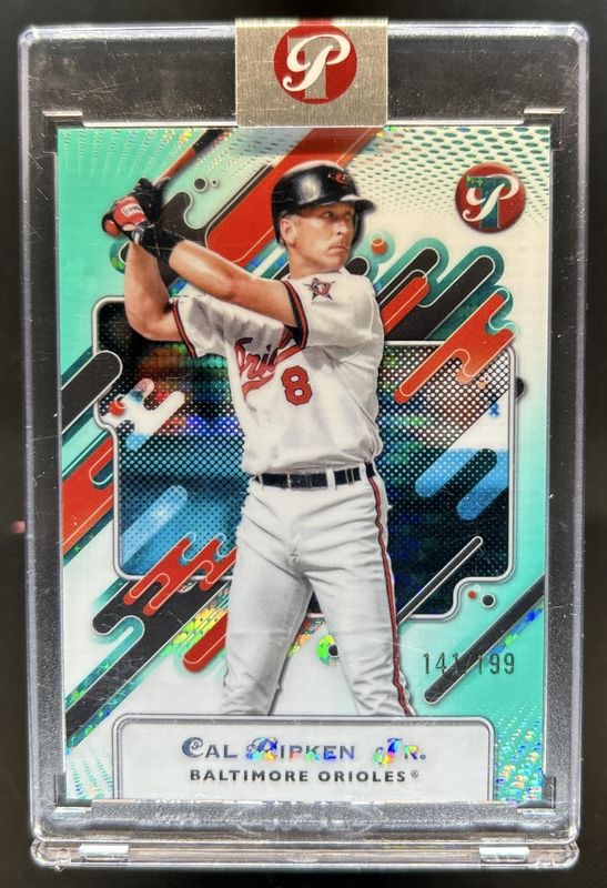 The Cal Ripken Jr. 2025 Topps Pristine #14 Pristine Aqua Refractor /199 card is 1 of 38 Cal Ripken Jr.'s card variations in the 2025 Topps Pristine set being tracked by Sports Card Investor, including Base, Pristine Refractor, Refractor, Aqua Refractor /199, and Pristine Purple Refractor /99.