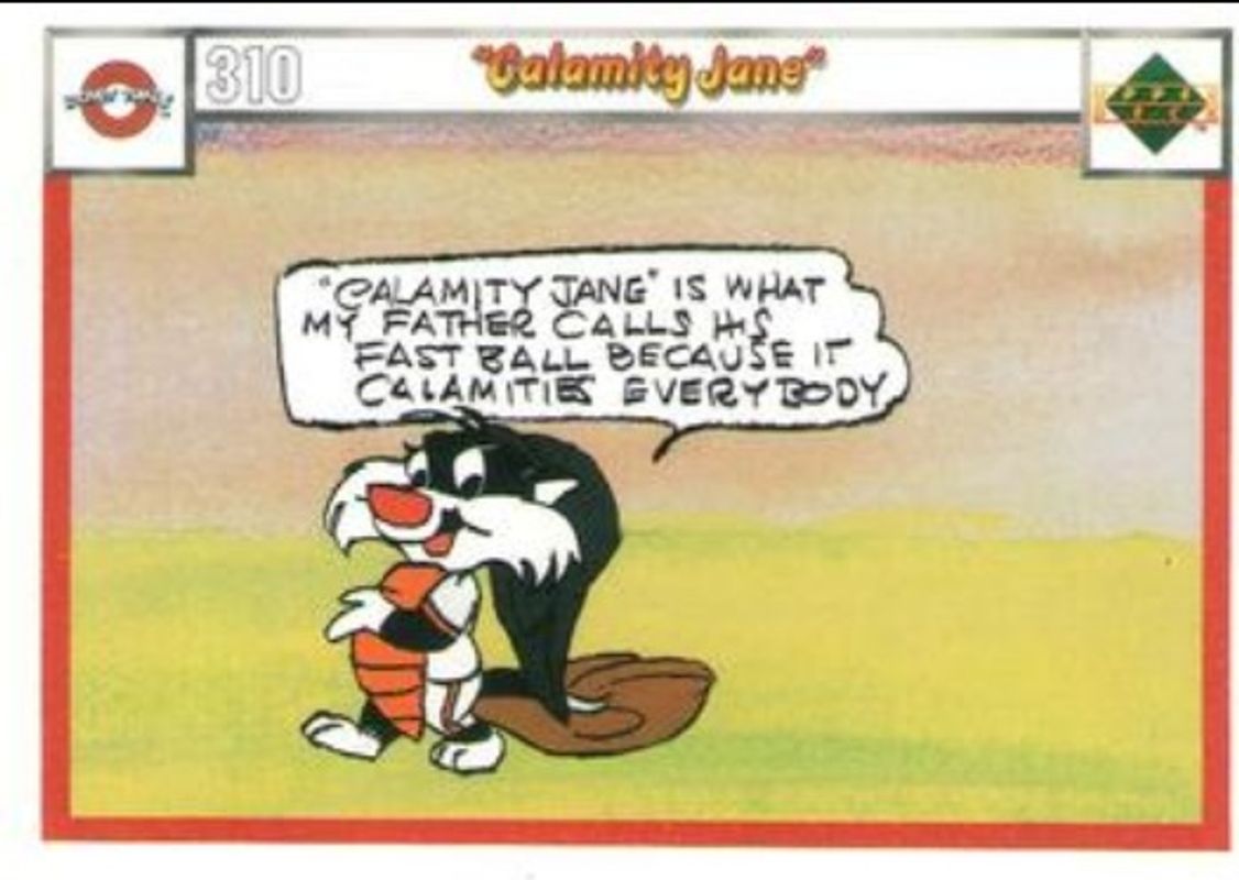 Other popular players in the 1990 Upper Deck Comic Ball set include Magnetic Field, Squeeze Play, Porky Pig and Charlie Dog, Acme Battle, and Curve Ball.