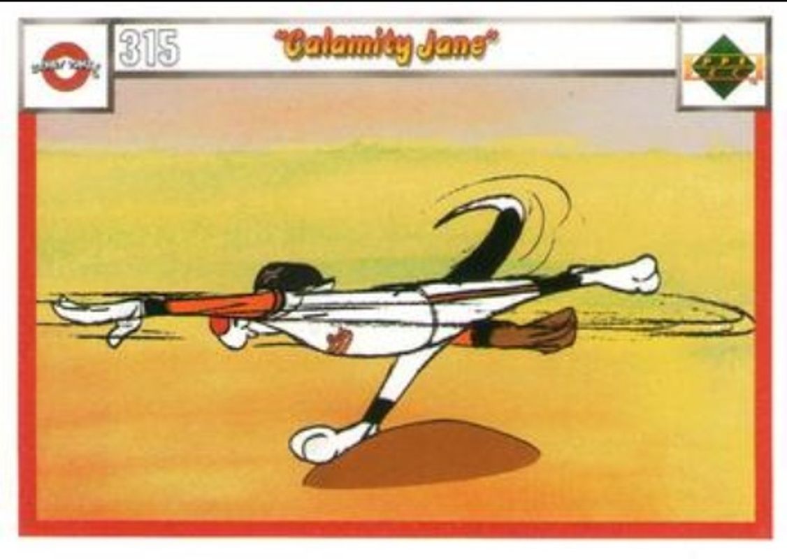 Other popular players in the 1990 Upper Deck Comic Ball set include Magnetic Field, Squeeze Play, Porky Pig and Charlie Dog, Acme Battle, and Curve Ball.