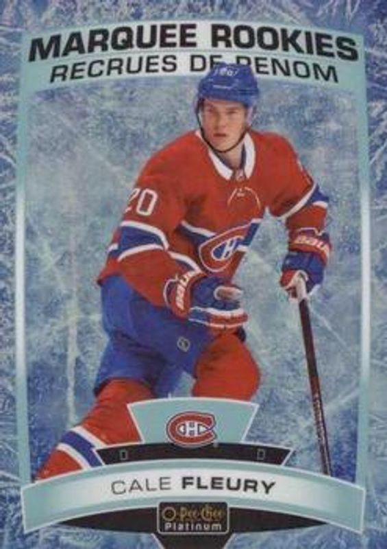 The Cale Fleury 2019 O-Pee-Chee Platinum #158 Arctic Freeze /99 Rookie card is 1 of 18 Cale Fleury's card variations in the 2019 O-Pee-Chee Platinum set being tracked by Sports Card Investor, including Base, Matte Pink, Rainbow, Sunset, and Violet Pixels /399.