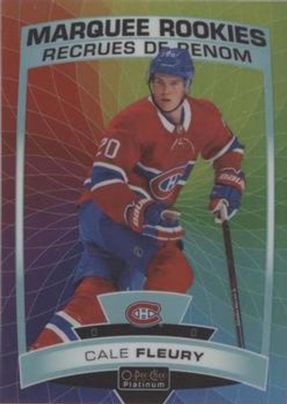 The Cale Fleury 2019 O-Pee-Chee Platinum #158 Rainbow Color Wheel Rookie card is 1 of 18 Cale Fleury's card variations in the 2019 O-Pee-Chee Platinum set being tracked by Sports Card Investor, including Base, Matte Pink, Rainbow, Sunset, and Violet Pixels /399.