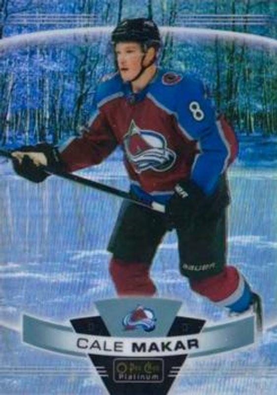 The Cale Makar 2019 O-Pee-Chee Platinum #175 Pond Hockey Rookie card is 1 of 39 Cale Makar's card variations in the 2019 O-Pee-Chee Platinum set being tracked by Sports Card Investor, including Base, Matte Pink, Rainbow, Sunset, and Violet Pixels /399.