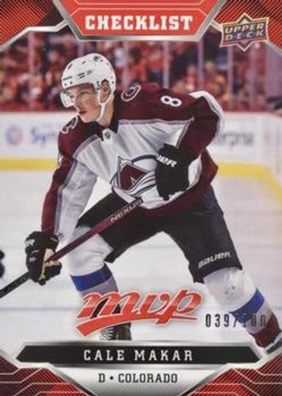 Cale Makar 2019 Upper Deck MVP #250 Script Leaderboard Achievements Red /100 Rookie RAW Price Guide