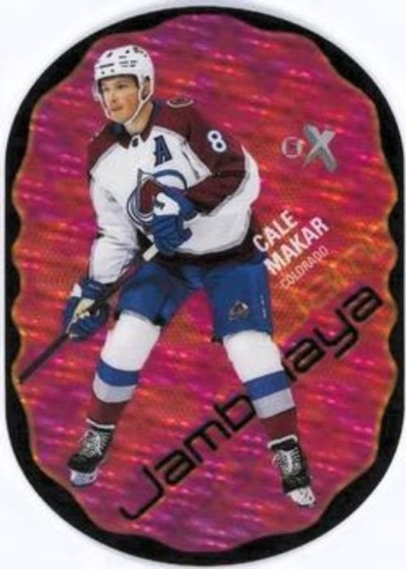 The Cale Makar 2022 Metal Universe #5-OF-20 Jambalaya card is 1 of 37 Cale Makar's card variations in the 2022 Metal Universe set being tracked by Sports Card Investor, including Base, Spectrum FX Blue, Auto Silver FX /349, Spectrum FX Purple /199, and Precious Metal Gems Green /100.