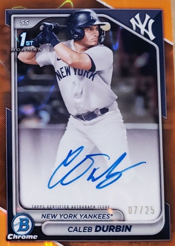 2024 Bowman Chrome 1st Caleb Durbin RC Auto Orange Lava Refractor 10/25! Yankees
