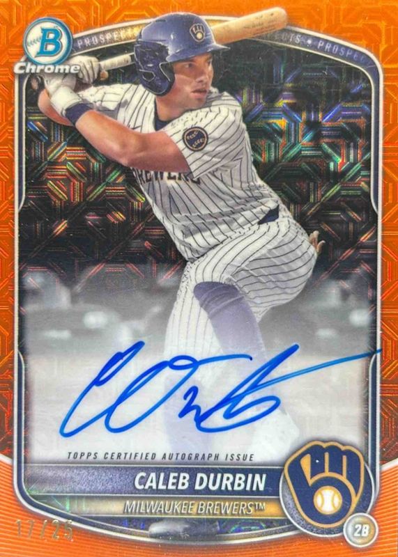 2025 Bowman Chrome Orange Mega Mojo Refractor Caleb Durbin Auto Brewers /25