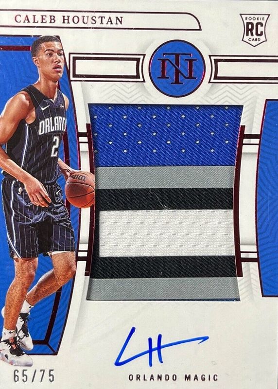 This card is 1 of 10 Caleb Houstan's card variations in the 2022 National Treasures set being tracked by Sports Card Investor, including Rookie Patch Auto /99, Rookie Patch Auto - Bronze /49, Rookie Patch Auto - Pink /25, Rookie Patch Auto - Gold FOTL /24, and Rookie Patch Auto - Gold /10.