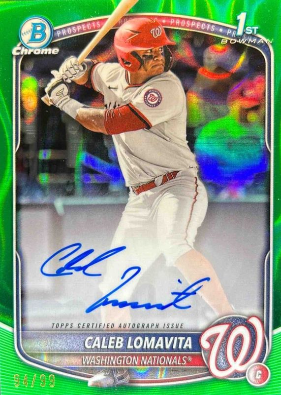 Caleb Lomavita 2025 Bowman Chrome 1st Green Lava Auto /99 Washington Nationals