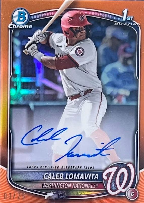 2025 Bowman Chrome 1st Caleb Lomavita Orange Auto /25 Wash Nationals #CPA-CLO