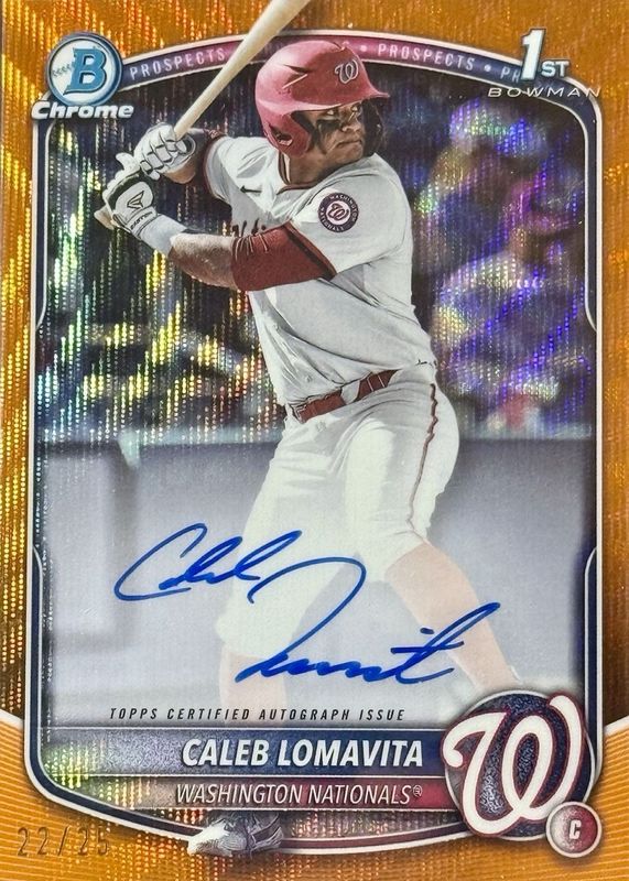 Caleb Lomavita 2025 Bowman #CPA-CLO Chrome Prospect Auto - Orange Wave Refractor /25 (1st) RAW Price Guide