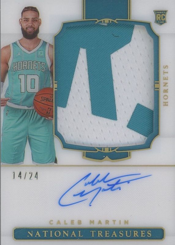 This card is 1 of 9 Caleb Martin's card variations in the 2020 National Treasures set being tracked by Sports Card Investor, including Rookie Patch Auto /99, Rookie Patch Auto - Gold /10, Rookie Patch Auto - Purple FOTL /8, Rookie Patch Auto - Emerald /5, and Rookie Patch Auto - Blue FOTL /3.