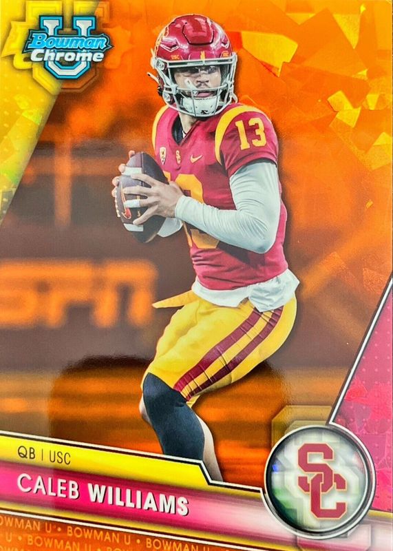 Caleb Williams 2023 Bowman Chrome U Orange Sapphire Rookie /25 SSP Clean
