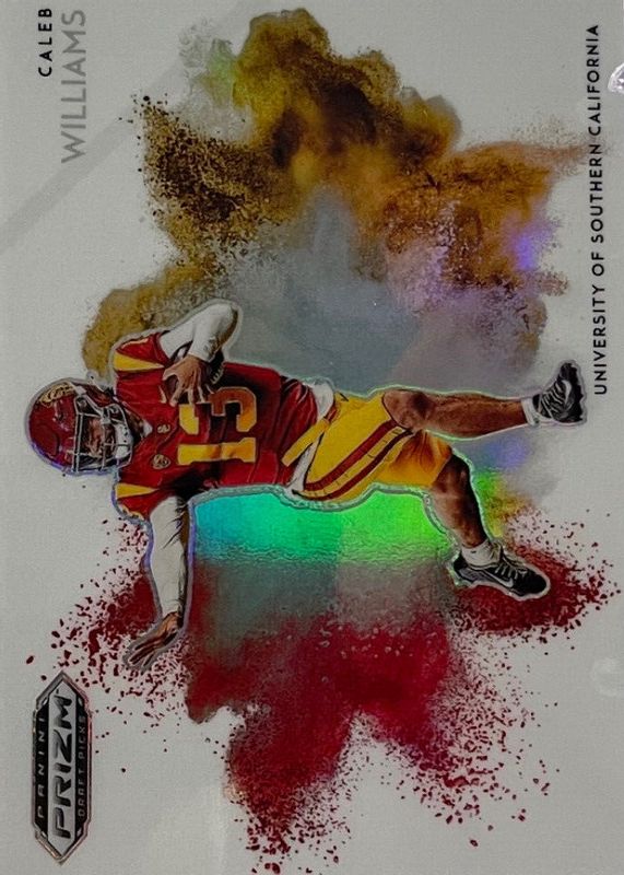 The Caleb Williams 2023 Prizm Draft Picks #CB-14 Color Blast /(SSP) card in Raw condition has not changed in price in the last 30 days and was last sold for $320.89 .