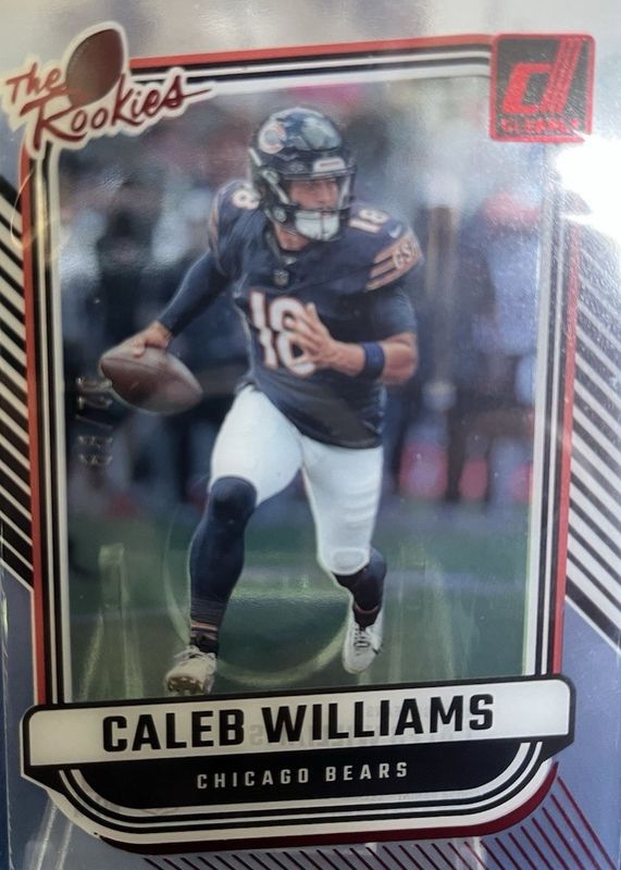 The Caleb Williams 2024 Clearly Donruss #1 Clearly The Rookies - Red /99 card in Raw condition has moved down -$7.00 (-31.1%) in the last 30 days and was last sold for $15.50 .