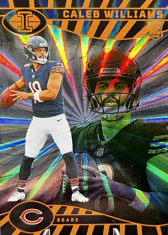 This card is 1 of 25 Caleb Williams' card variations in the 2024 Illusions set being tracked by Sports Card Investor, including Base, Retail, Trophy Collection Dots, Trophy Collection Emerald, and Trophy Collection Galactic.