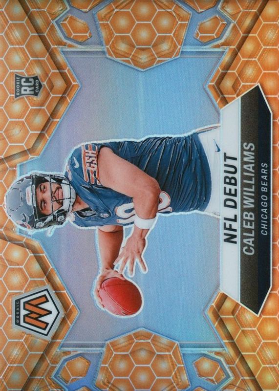 The Caleb Williams 2024 Mosaic #289 NFL Debut - Honeycomb /(SSP) Rookie card in Raw condition has moved up $57.51 (+37.7%) in the last 30 days and was last sold for $210.00 .