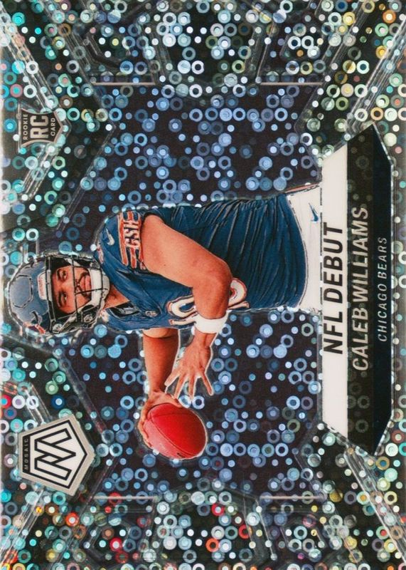 2024 MOSAIC CALEB WILLIAMS RC DEBUT NO HUDDLE DISCO PRIZM ROOKIE BEARS