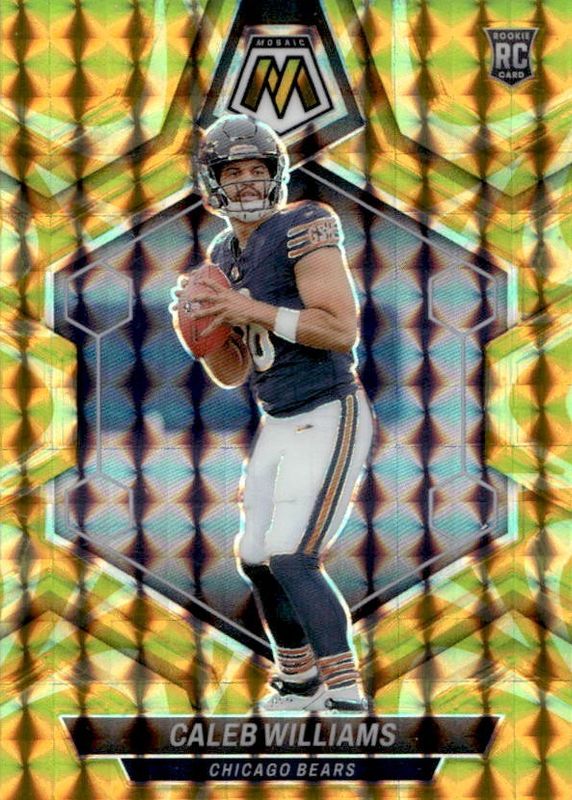 The Caleb Williams 2024 Mosaic #301 Reactive Yellow Rookie card in Raw condition has moved up $13.55 (+159%) in the last 30 days and was last sold for $22.08 .
