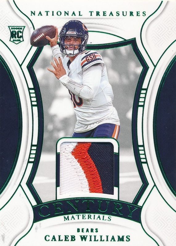 Caleb Williams 2024 National Treasures #CM-CWS Century Materials - Emerald /5 Rookie RAW Price Guide