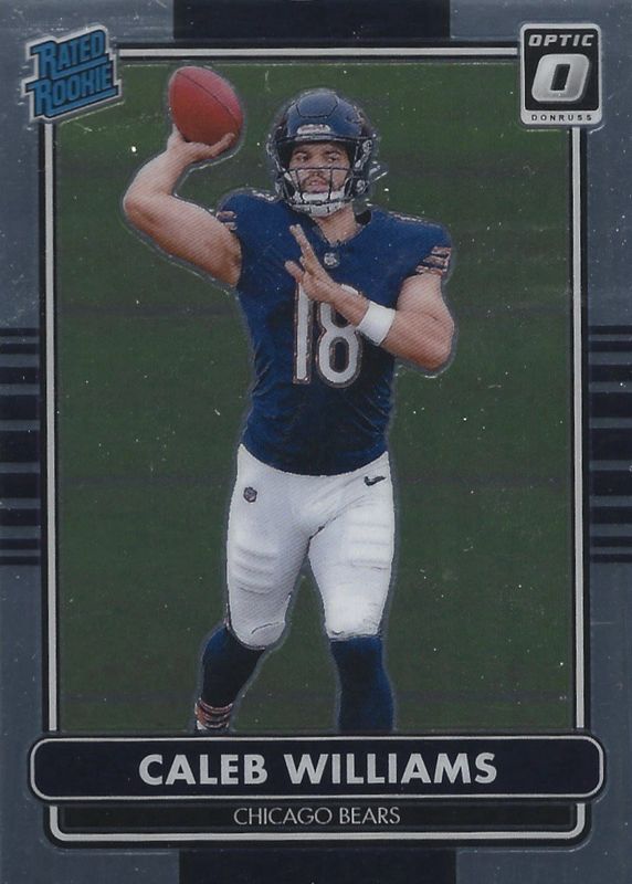 The Caleb Williams 2024 Optic #1 2014 Retro Series Rookie card in Raw condition has moved up $0.86 (+49.3%) in the last 30 days and was last sold for $2.60 .
