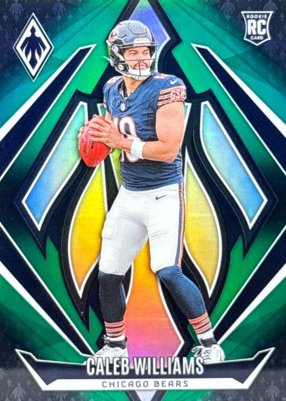 The Caleb Williams 2024 Phoenix #151 Green Fade /199 Rookie card in Raw condition has moved up $21.00 (+127%) in the last 30 days and was last sold for $37.50 .