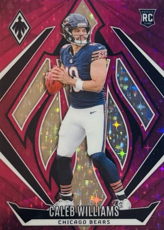 The Caleb Williams 2024 Phoenix #151 Pink Stars /8 Rookie card in Raw condition has not changed in price in the last 30 days and was last sold for $177.50 .