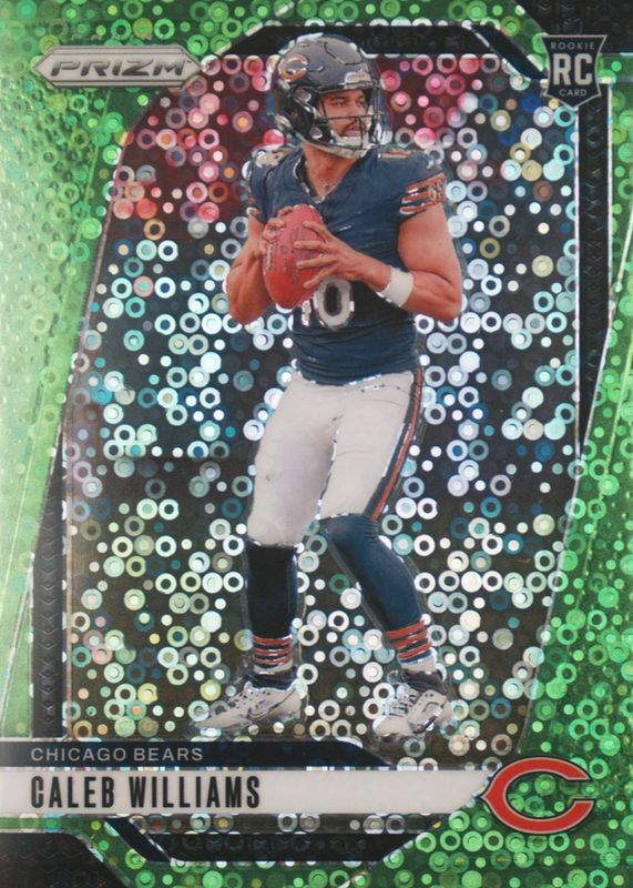 The Caleb Williams 2024 Prizm #301 No Huddle Neon Green /10 Rookie card in Raw condition has not changed in price in the last 30 days and was last sold for $1,400.00 .