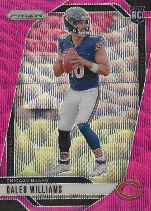 The Caleb Williams 2024 Prizm #301 Pink Wave Rookie card in Raw condition has moved up $11.67 (+50.7%) in the last 30 days and was last sold for $34.67 .