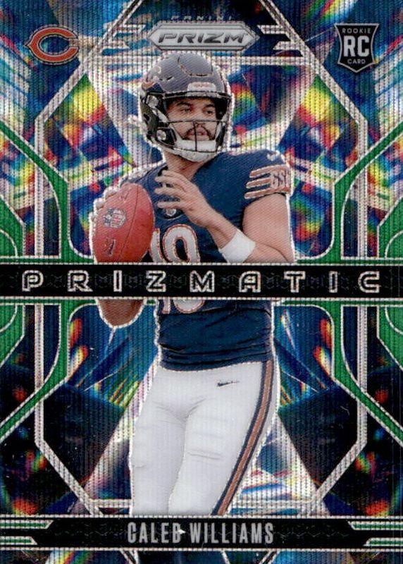 The Caleb Williams 2024 Prizm #1 Prizmatic - Green Wave Rookie card in Raw condition has moved up $0.65 (+16.9%) in the last 30 days and was last sold for $4.50 .