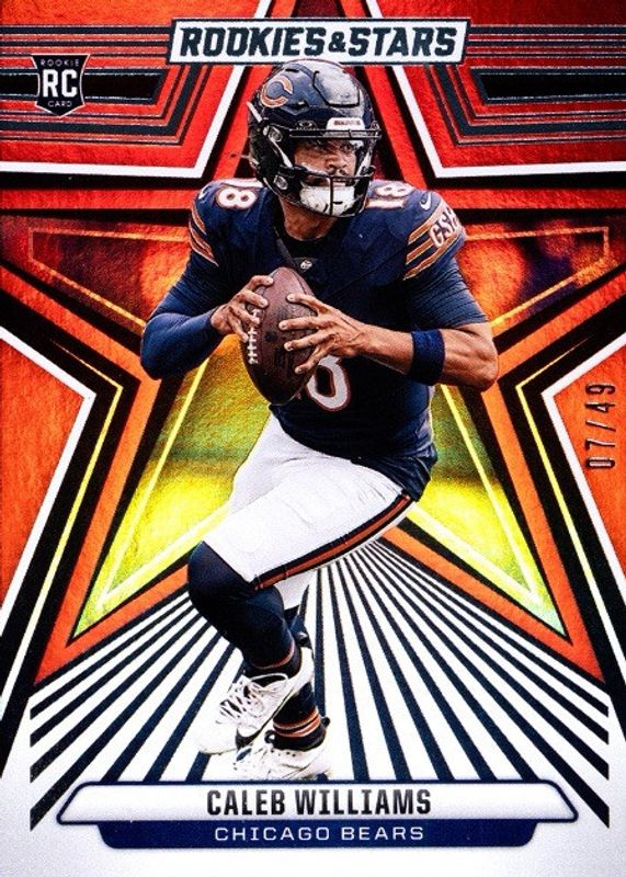 Best Prices Available For Sale of Caleb Williams 2024 Rookies & Stars #118 Red & Blue /49