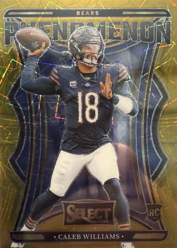 The Caleb Williams 2024 Select #1 Phenomenon - Gold /10 Rookie card in Raw condition has not changed in price in the last 30 days and was last sold for $420.00 .