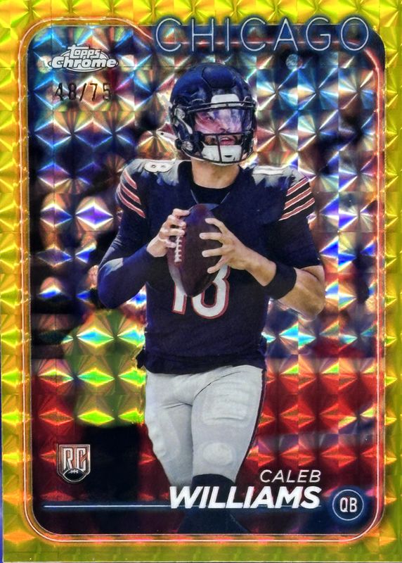 Best Prices Available For Sale of Caleb Williams 2024 Topps Chrome #202 Yellow Geometric Refractor /75