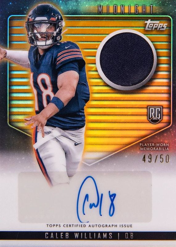 Caleb Williams 2024 Topps Midnight #RJA-CW Rookie Jersey Autographs - Summer Solstice /50 RAW Price Guide