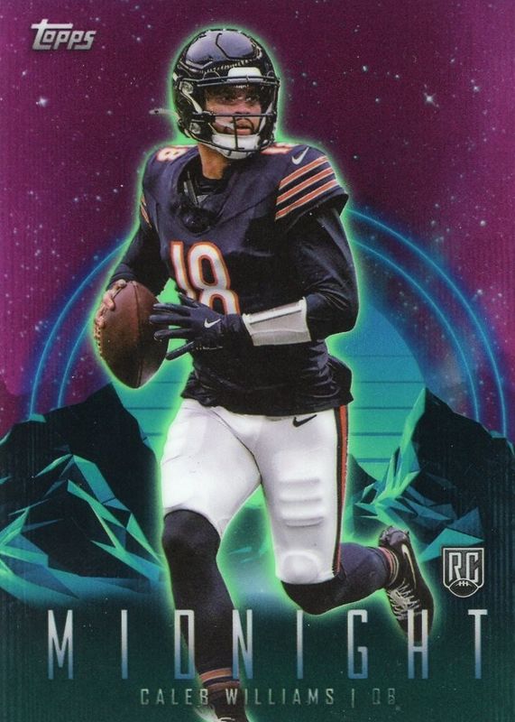 This card is 1 of 70 Caleb Williams' card variations in the 2024 Topps Midnight set being tracked by Sports Card Investor, including Base, Moon Beam, Morning /149, Twilight /99, and Dusk /75.