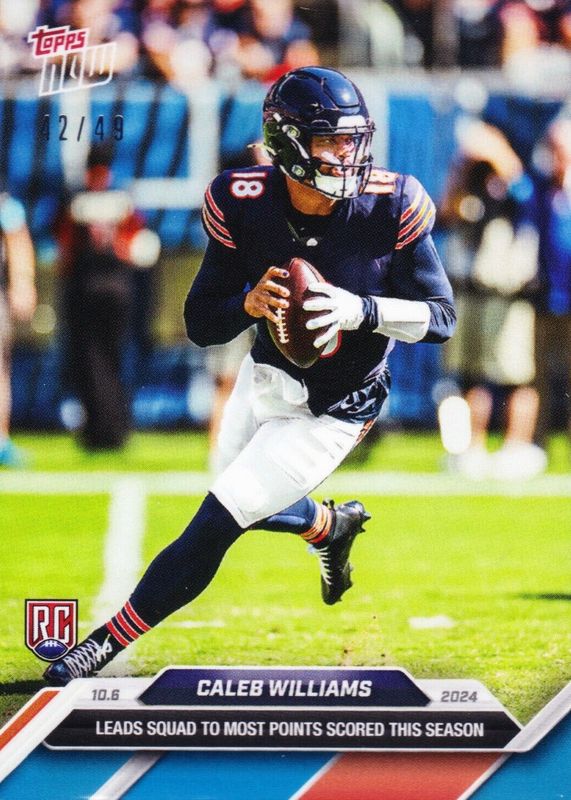 Caleb Williams Chicago Bears Rookie Most Points 2024 Topps Now Card #8 Blue /49