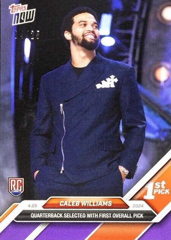 Caleb Williams RC 2024 NFL Draft TOPPS NOW D-1 - 1st Pick Bears - 10/25 Purple