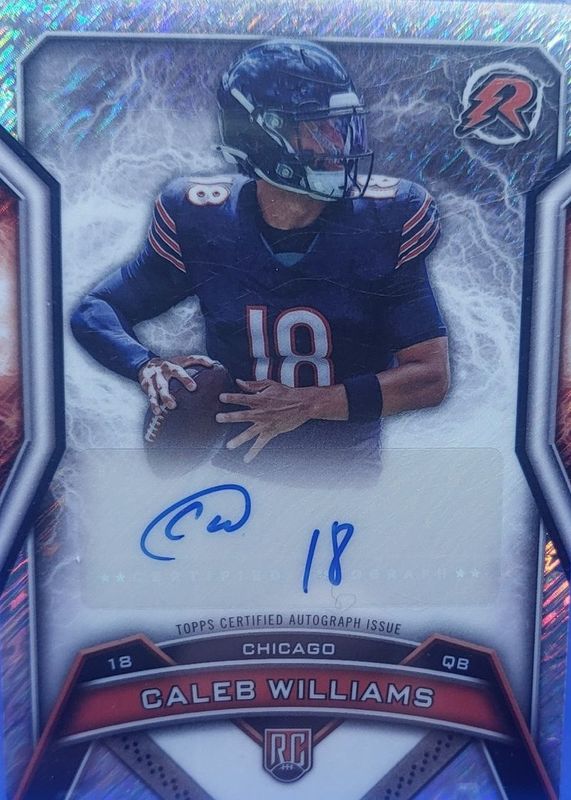 The Caleb Williams 2024 Topps Resurgence #RRS-CW Resurgence Rookie Signatures - Silver Static Refractor card in Raw condition has not changed in price in the last 30 days and was last sold for $140.00 .