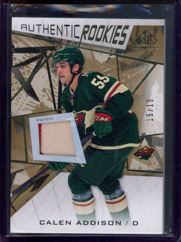 The Calen Addison 2021 SP Game Used #175 Gold Premium Memorabilia /15 Rookie card is 1 of 26 Calen Addison's card variations in the 2021 SP Game Used set being tracked by Sports Card Investor, including Base /99, Blue Auto, Red Jersey, Red Fragment /205, and Gold Auto Jersey /99.