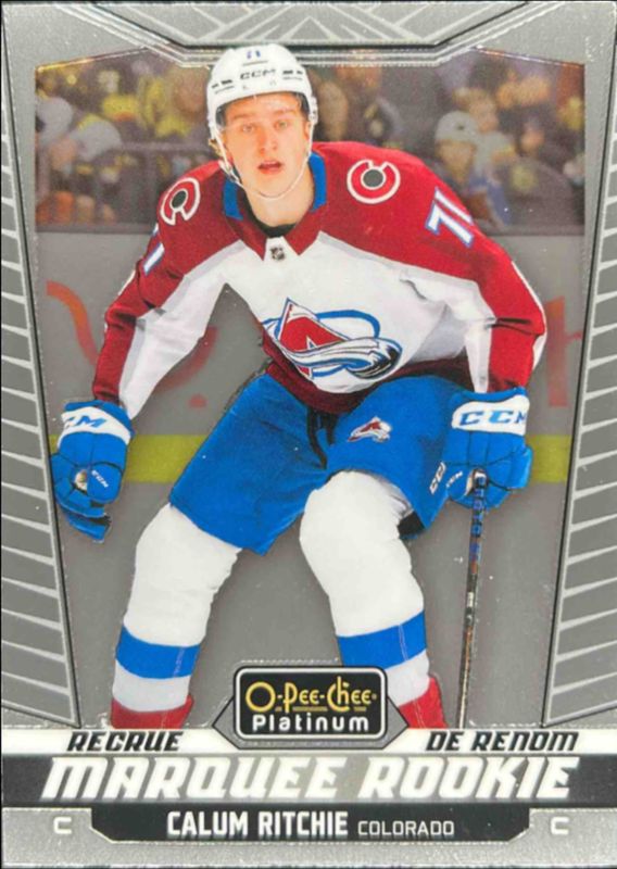 The Calum Ritchie 2024 O-Pee-Chee Platinum #274 Base Rookie card is 1 of 15 Calum Ritchie's card variations in the 2024 O-Pee-Chee Platinum set being tracked by Sports Card Investor, including Neon Yellow Surge, Pink Magma, Rainbow, Sunset, and Violet Pixels /299.