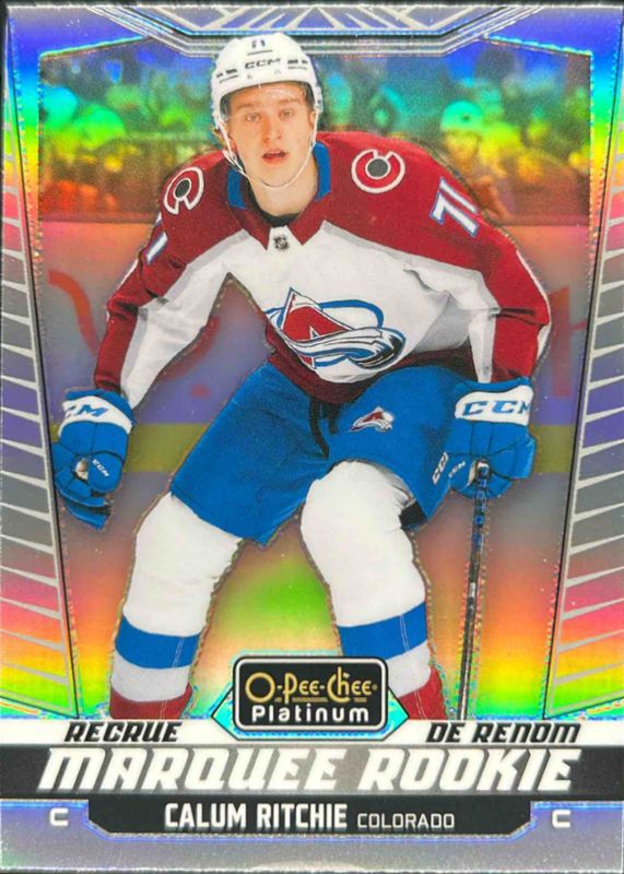 The Calum Ritchie 2024 O-Pee-Chee Platinum #274 Rainbow Rookie card is 1 of 15 Calum Ritchie's card variations in the 2024 O-Pee-Chee Platinum set being tracked by Sports Card Investor, including Base, Neon Yellow Surge, Pink Magma, Sunset, and Violet Pixels /299.