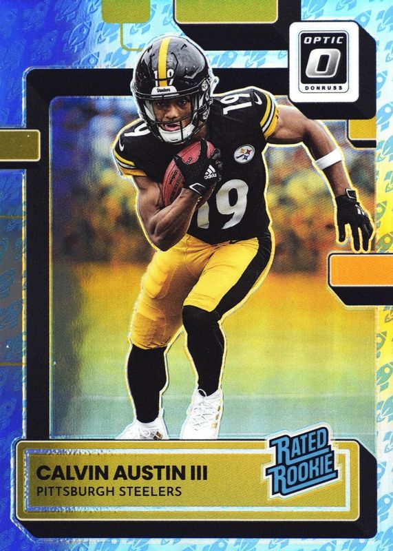 This card is 1 of 45 Calvin Austin III's card variations in the 2022 Optic set being tracked by Sports Card Investor, including Base, Holo, Holo Variation, Pink, and Purple Shock.