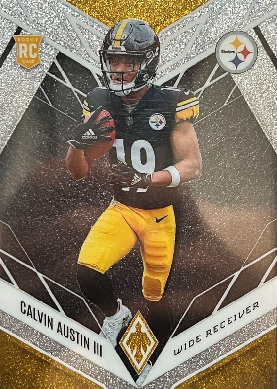 This card is 1 of 27 Calvin Austin III's card variations in the 2022 Phoenix set being tracked by Sports Card Investor, including Base, Color Burst, Red Mojo (/10), Silver, and Silver Lazer.
