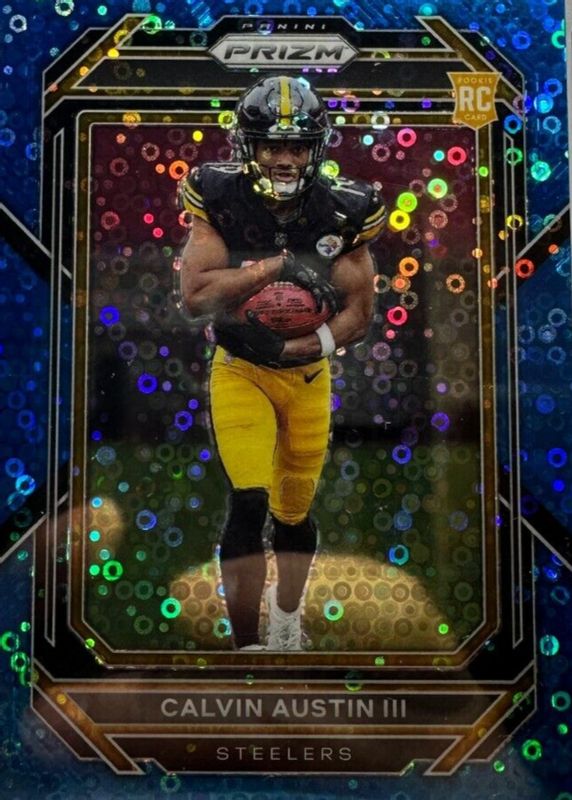 This card is 1 of 71 Calvin Austin III's card variations in the 2022 Prizm set being tracked by Sports Card Investor, including Base, Green, Green Ice, Light Blue, and No Huddle.