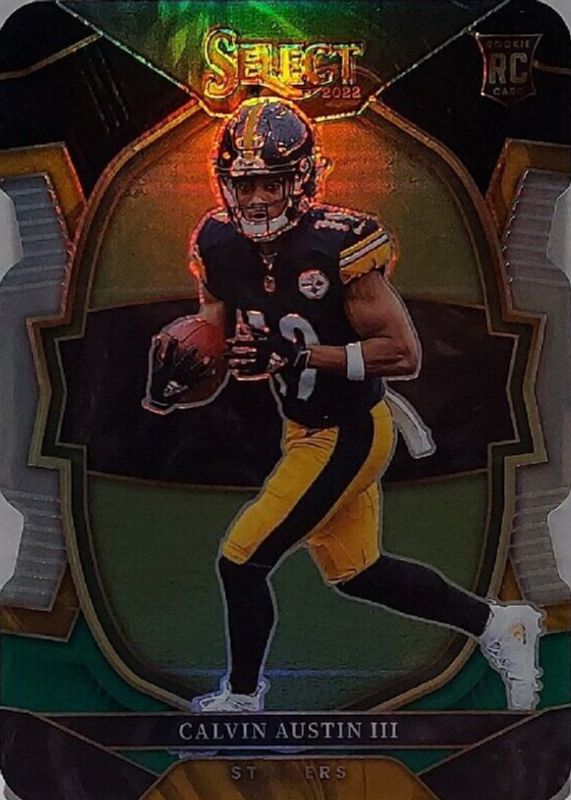 This card is 1 of 41 Calvin Austin III's card variations in the 2022 Select set being tracked by Sports Card Investor, including Concourse, Concourse Black & Red Die-Cut, Concourse Disco, Concourse Green & Yellow Die-Cut, and Concourse Red & Blue Die-Cut.
