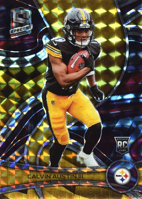 This card is 1 of 55 Calvin Austin III's card variations in the 2022 Spectra set being tracked by Sports Card Investor, including Silver, Celestial /99, Hyper /75, Neon Blue Die-Cut /50, and Astral /40.