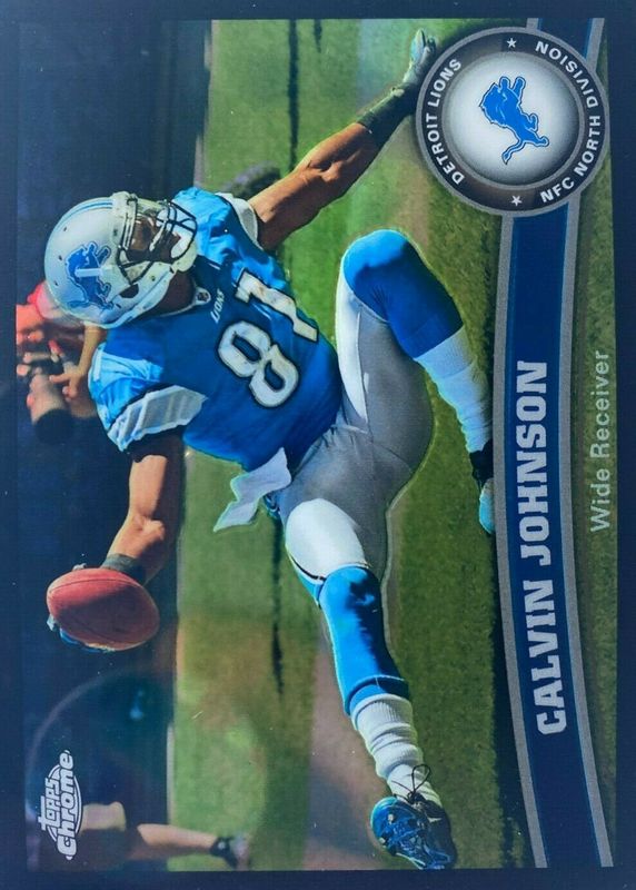This card is 1 of 10 Calvin Johnson's card variations in the 2011 Topps Chrome set being tracked by Sports Card Investor, including Orange Refractor, Refractor, X-Fractor, Purple Refractor /499, and Blue Refractor /199.