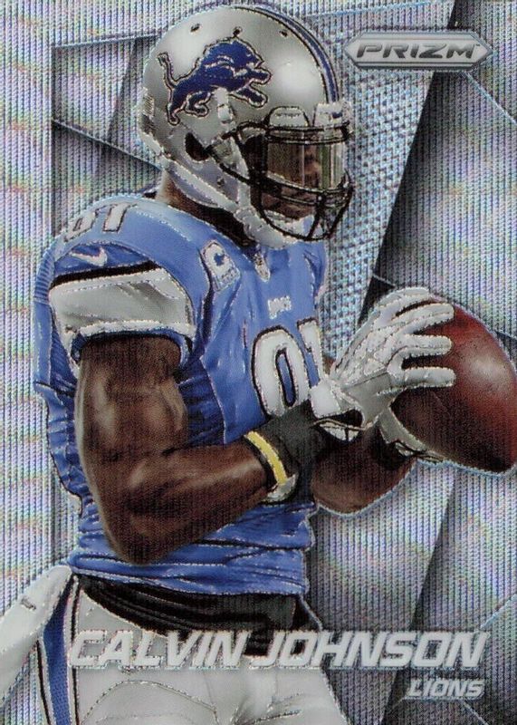 This card is 1 of 33 Calvin Johnson's card variations in the 2014 Prizm set being tracked by Sports Card Investor, including Base, Blue, Camo, Green, and Neon Green & Yellow.