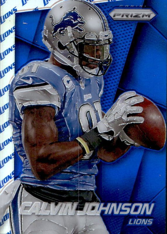 This card is 1 of 33 Calvin Johnson's card variations in the 2014 Prizm set being tracked by Sports Card Investor, including Base, Blue, Camo, Green, and Neon Green & Yellow.